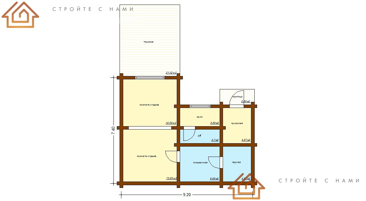 Главная / Каталог проектов / Дома-бани из дерева / Проект дома бани (ДБ-ОЦБ-73)