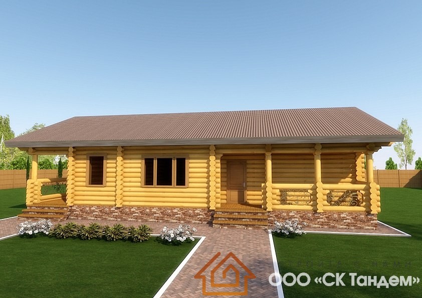 Отличительной особенностью данного проекта дома является его одноэтажность, несмотря на это дом большой и вместительный даже для большой семьи. Данный дом так же подойдёт для двух семей т.к. имеет два входа с крыльца, прихожую, большую гостиную, а так же несколько санузлов и отдельное тех.помещение.